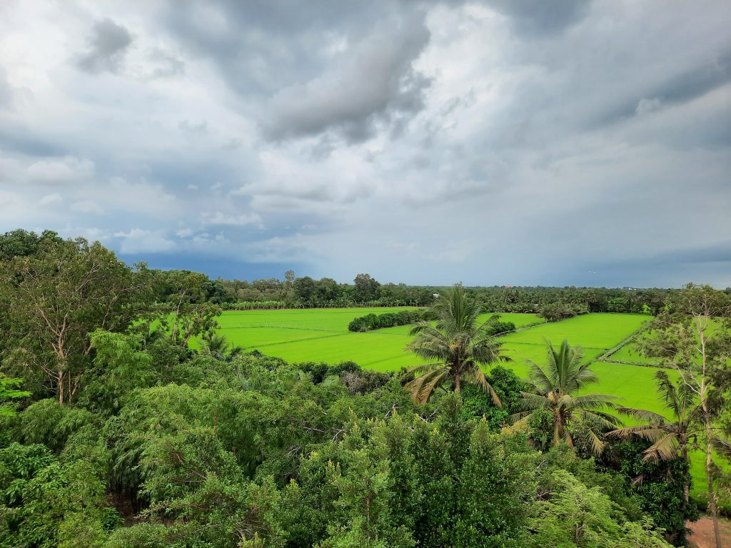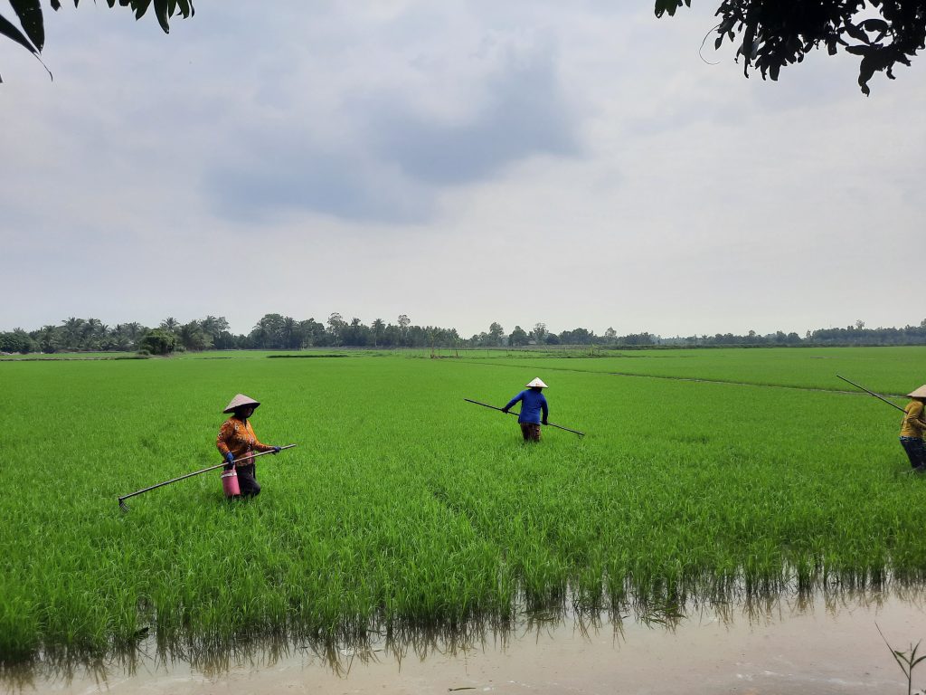 The tour also includes a visit to local rice fields (seasonal), where you can walk along the fields, learn about rice cultivation, and understand how farming shapes daily life in the Mekong Delta. The landscape changes beautifully with each season — from lush green paddies to golden harvest fields.